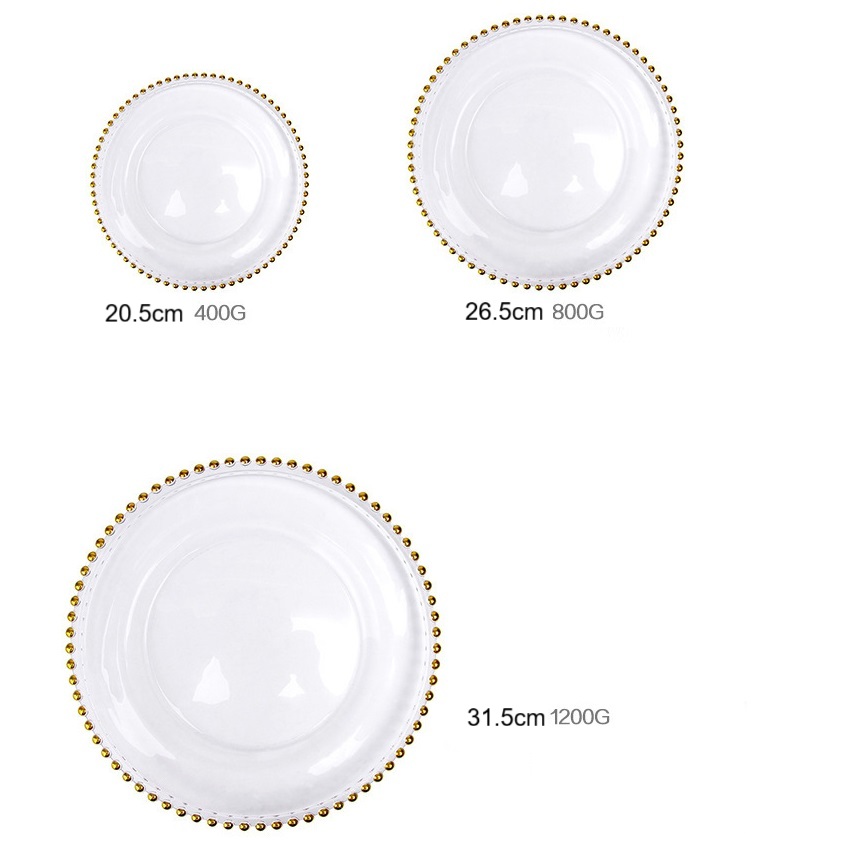 B66010017 centrifugal glass plate pearl rim Glass plate centrifugal process with pearl rim the pearl rim can be golden colour,silver colour or clear Sent E-mail INQUIRY DETAILS D31.5cm,1200gD26.5cm,800gD20.5cm,400g [Next:B07260002 centrifugal glass plate]→ RELATED B01260012cake plate 3ply B01260005 glass plate B01260013 cake plate with stem B01260005 glass plate