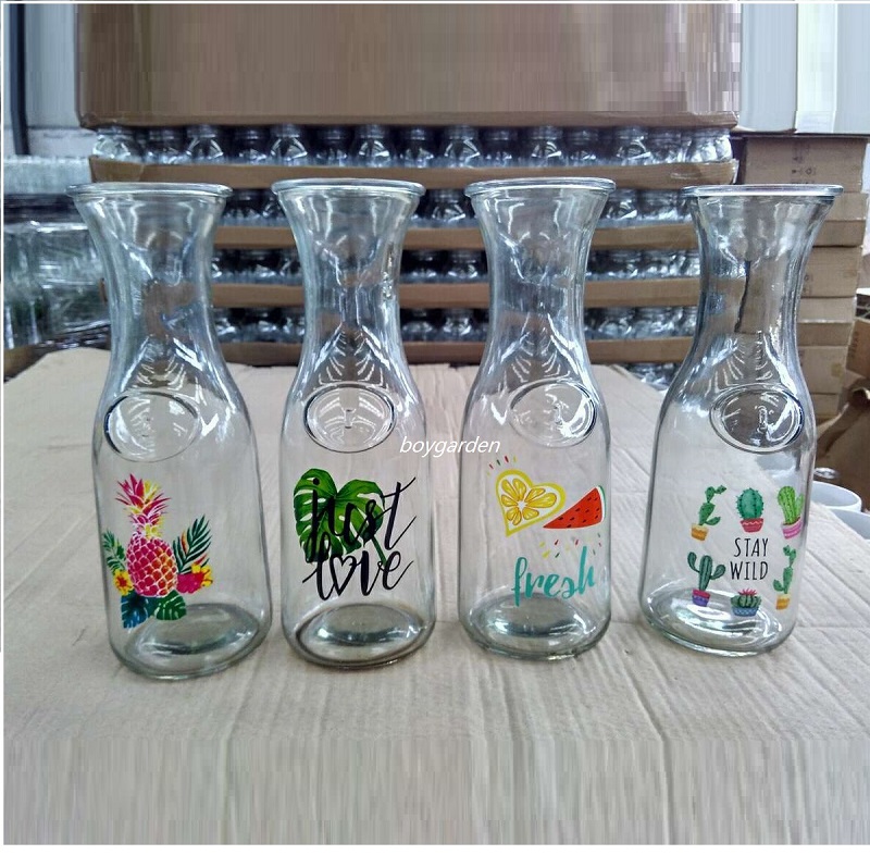1L glass bottle with natural decal printing 4designs